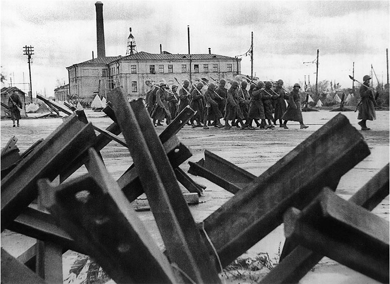 Бойцы инженерных частей в Ленинграде отправляются на строительство оборонительных сооружений. 1942 г. Фото Г. Коновалова
