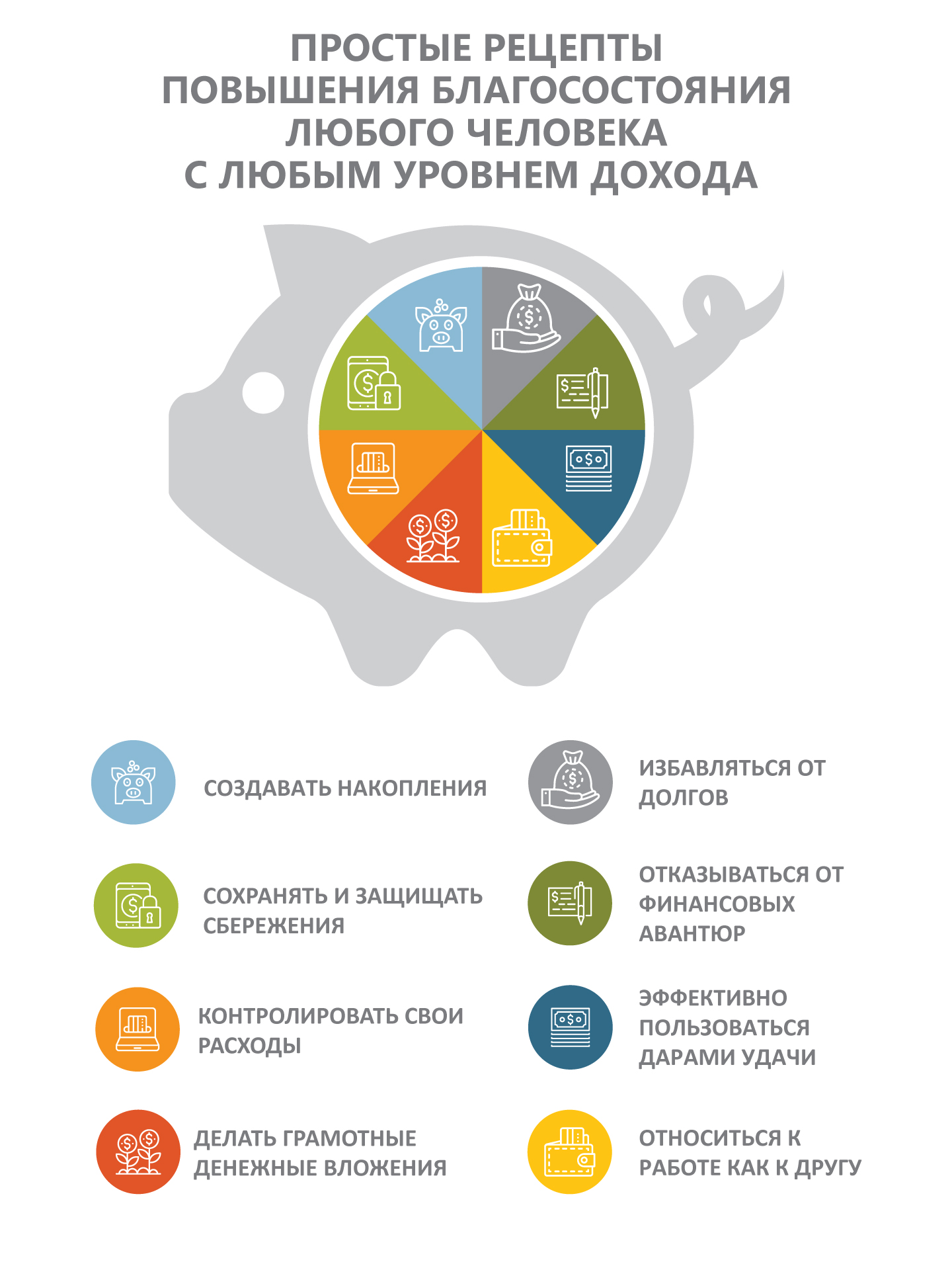 Деньги – это инструмент для достижения целей. Действительно, имея достаточно средств, можно жить той жизнью, о которой мечтаешь. Можно позволить себе заниматься тем, что нравится, а не тем, что нужно, получить свободу выбора во всем. Но чтобы денег было достаточно, надо приложить усилия, т. е. научиться считать свои доходы и расходы, осознать свои денежные цели и составить план. В этом случае работа будет не ради денег, а ради достижения своего уровня комфорта и удовольствия – тогда достаток сам придет.