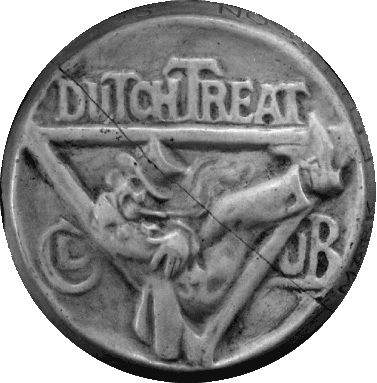 В награду за речь гость получает легкий завтрак и большую гипсовую медаль клуба, на которой изображен гуляка в продавленном цилиндре, дрыхнущий под сенью клубных инициалов.