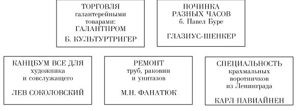 В конце концов странный комбинат частников развалился, и Карл Павиайнен уехал на извозчике во мглу, увозя свой несозвучный эпохе товар. За ним канули в небытие Галантпром и Канцбум, за которыми гнались конные фининспектора. Фанатюк спился. Глазиус-Шенкер ушел в часовой коллектив «Новое время». Гофрированные железные шторы со стуком упали. Исчезла и занятная вывеска.