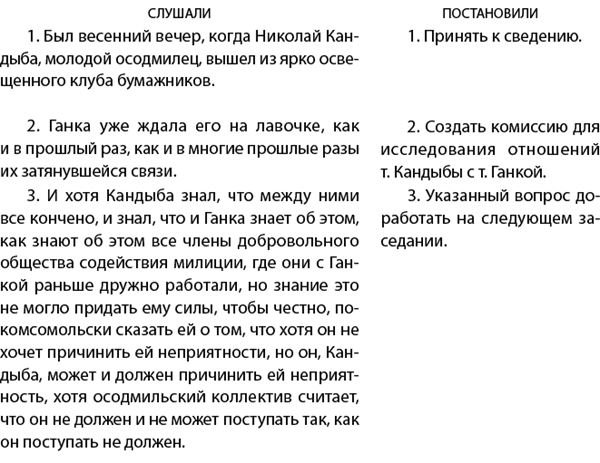 И замечательная молодость ушла на создание всяческих «слушали – постановили». «Слушали вопрос о перекраске забора в экономический зеленый цвет. Постановили забор перекрасить в зеленый экономический цвет, а вопрос об олифе проработать т. Самообложенскому совместно с т. Сексопилыциковым из киносекции». «Слушали об организации междугородной переклички писателей с талдомскими кустарями. Постановили перекличку организовать, поручив т. Самообложенскому подготовить материалы».