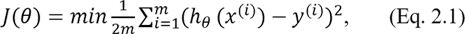 Задача обучения по примерам рассматривается как задача оптимизации, которую решают путем настройки множества параметров θ алгоритма А так, чтобы минимизировать значение функции стоимости J(θ) по всем примерам m.
