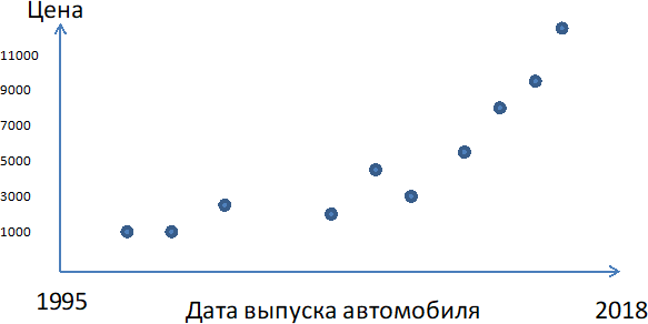 Рисунок 2.1. Зависимость стоимости автомобиля от года выпуска