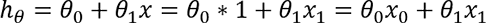 с учетом того, что x0 = 1. Последнее выражение позволяет вычислять функцию гипотезы путем матричного умножения матрицы X, первая колонка которой всегда состоит из единиц, на вектор θ.