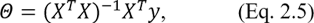 где θ – вектор параметров; (XTX)-1 – обратная матрица XTX; XT – транспонированная матрица X.