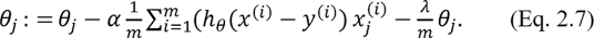 theta=theta-alpha*(1/m)*np.dot((h-y).T,X) -(lambda_reg/m)*theta