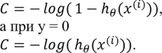 То есть в случае, если y = 0, стоимость для i-го примера принимает вид: