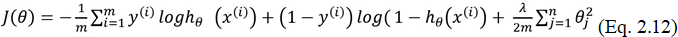 Как и в случае с линейной регрессией, для увеличения обобщающей способности алгоритма применяют регуляризацию (последнее слагаемое в нижеследующей формуле), которая позволяет уменьшить влияние величин высокого порядка: