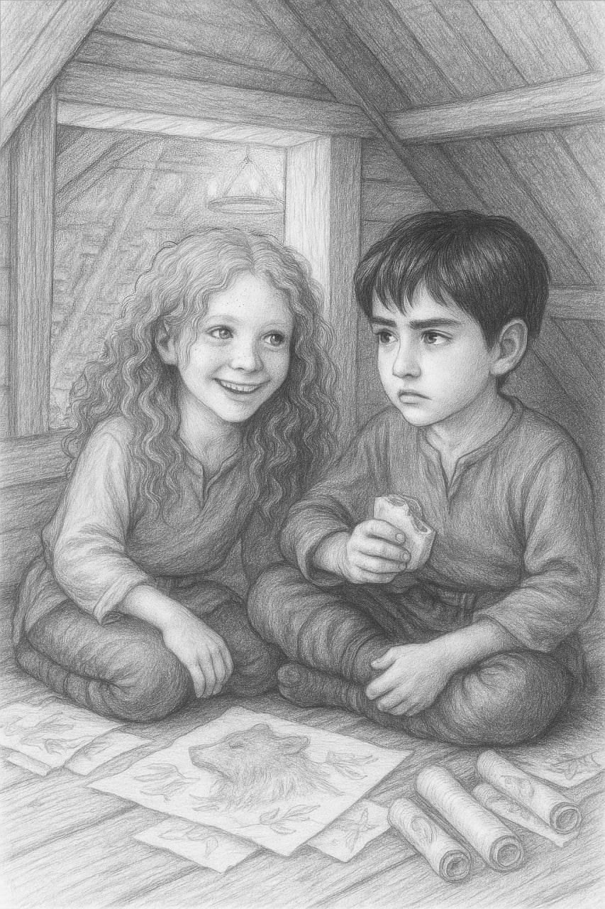Лира села рядом, открыв альбом, и, обмакнув перо в чернила, начала что-то шкрябать по белому листу бумаги. На девочке были льняные бриджи и легкая рубаха, опоясанная кожаным ремешком. А ее волосы пахли свежей древесиной и смолой.