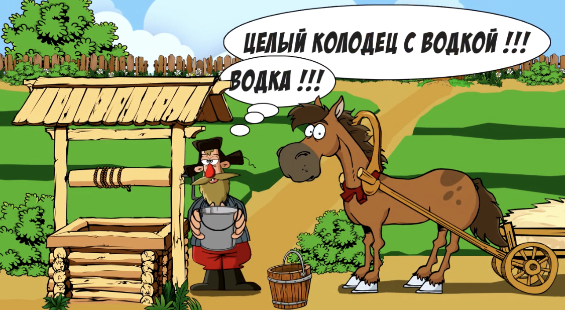 Но не было бы счастья, да несчастье помогло. Изворотливый ум торгашки Соньки быстро сообразил, как можно и здесь заработать денег. Пока народ столы ставил и петухов варил, Сонька залила напитком из колодца молочные бидоны, и решила сама отвезти этот продукт в райцентр на рынок. Там и продать кусочек свалившегося на деревню счастья знакомому владельцу местной харчевни. Благо Нюся уже запряжена, бидоны готовы, и даже телогрейка Прокопыча для тепла в повозке валяется.