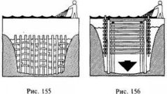 Иногда вход в загон выполняется в виде постепенно сужающейся спирали. Рыба движется вдоль забора, попадает в спираль, и по ней – в садок (рис. 158).
