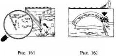 В широких реках, где перекрыть весь поток затруднительно, можно сооружать ловушки возле одного из берегов. А чтобы рыба пошла в нужном направлении, встать посреди свободного потока и всеми возможными способами создавать шум (рис. 161).