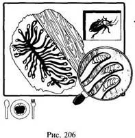 Китайцы с удовольствием поедают сушеных пауков. Не испытывающие особого голода японцы – стрекоз. Народности южноазиатского региона вообще отличаются потрясающей всеядностью и используют в пищу практически всех встречающихся у них насекомых, от самых экзотических, вроде почитаемых за лакомство жареных скорпионов, до сугубо домашних (рис. 204).