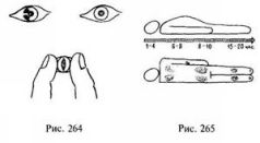 Явными признаками биологической, необратимой смерти можно считать: помутнение и высыхание роговицы глаза, при сдавливании глазного яблока с боков пальцами зрачок сужается и напоминает кошачий глаз (рис. 264); через 2-4 ч после смерти на теле проступают нерезко очерченные багрово-синюшные трупные пятна (рис. 265), возникающие из-за стекания крови в нижерасположенные части тела (при положении на спине пятна наблюдаются на пояснице, лопатках, ягодицах, при положении на животе – на лице, груди, передней части конечностей); мышечное окоченение, при котором возникает сопротивление движению нижней челюсти и конечностей пострадавшего.