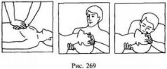 Непрямой массаж сердца и искусственное дыхание (рис. 269) проводятся в случае остановки сердца.