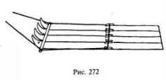 Сани-волокуши из лыж (рис. 272). Удобные сани можно сделать из 3-4 лыж, составленных вместе и крепко связанных в районе креплений и носка. Если лыжи не жалко, их можно сбить 2-3 поперечными досками или жердями. Две лыжи связываются носками и расставляются углом, соединяясь в районе креплений поперечной жердью.