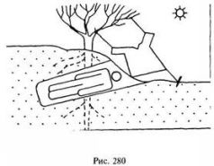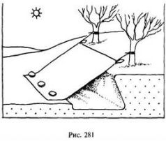 Удобна вырытая возле куста глубокая ниша с нависающим козырьком с северо-восточной стороны (рис. 281). Причем чем она будет глубже, тем в ней будет прохладней.