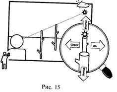 Если направо – то вы смотрите приблизительно на юг. Налево – значит, ваш взгляд направлен на север. Если поднимается вверх – визир нацелен на восток. Опускается – на запад. Еще раз повторю, что данным способом стороны света определяются очень приблизительно (рис. 15).