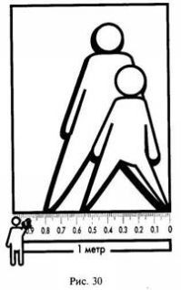 Поэтому в аварийной ситуации желательно постоянно вести учет пройденного расстояния. Для этого надо знать несколько простейших цифр. Так, например, длина шага подростка в среднем составляет 0,5-0,6 м, взрослого человека – 0,75-0,8 м (рис. 30). По ровной дороге человек проходит в час примерно столько километров, сколько делает шагов в три секунды (при длине шага 0,8 м). Но для определения пройденного расстояния данным способом нужно как минимум иметь секундомер, да и точность его не очень велика.