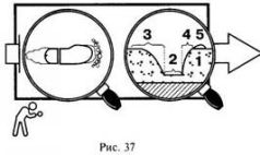 Чтение следов зимой. Зимой определить направление движения можно по выволоке и поволоке. Выволокой следопыты называют борозду, оставшуюся при вытаскивании ноги из толщи снега. Такая борозда обычно шире у ямки следа, далее она резко сужается. Соответственно поволокой считается борозда, образующаяся при опускании ноги в снег до окончательного шага. Поволока начинается примерно с половины длины шага, постепенно расширяется и завершается отпечатком следа. Выволока обычно короче и круче, чем поволока. Это позволяет определить, в какую сторону двигался пешеход или зверь, даже если след несвежий и отпечаток подошвы обуви покрыт слоем свежевыпавшего снега. Иначе говоря, выволока относительно следа обращена в сторону движения, а поволока-в противоположную сторону, то есть туда, откуда человек или зверь пришел. На глубоком снегу выволоки и поволоки могут соединяться, но чаще всего между ними бывают промежутки (рис. 37).