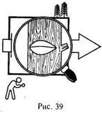 В лесной зоне небольшие тропы обычно метят на уровне груди идущего человека, в пределах видимости одной метки от другой. Чаще всего метки ставят на наиболее крупных, выступающих из густолесья на тропу деревьях, которые издалека бросаются в глаза. Простейший затес представляет из себя глубокую, снимающую не только кору, но и верхний слой древесины зарубку, сделанную с помощью одного-двух ударов топора. Более сложные затесы встречаются редко, так как вырезать замысловатые рисунки на стволах – дело долгое и хлопотное (рис. 39).