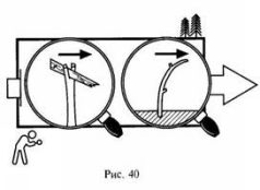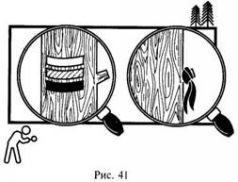 Три– четыре затеса на стволе рядом друг с другом могут обозначать, что в стороне находится удобная стоянка или через несколько метров будет разветвление тропы, дороги, родник. Воткнутая поперек тропы ветка или молодое деревце вершиной указывают направление, в котором человек свернул в лес. Это временная метка, с помощью которой метят маршрут разошедшиеся на время охотники. Иногда роль указующей стрелки играет щепка или небольшая веточка, вставленная в расщеп на верхнем конце кола, вбитого в грунт посреди тропы. В некоторых случаях охотники оставляют рядом с меткой, на кусочке бересты или на бумаге, засунутой в полиэтиленовый пакет или стеклянную тару, письменное сообщение, из которого потерпевшие бедствие могут почерпнуть для себя много полезной информации (рис. 40).