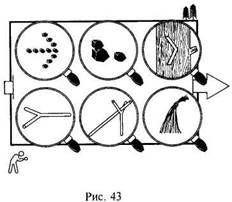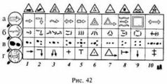 Знаки, приведенные на рис. 43, имеют хождение среди иностранных любителей путешествий и потерпевших бедствие авиаторов и служат для указания направления следования. При этом геометрия этих знаков, равно как и любых других, универсальна – более узкий, либо наклоненный к земле конец направлен в сторону движения.