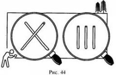 Знаки, изображенные на рис. 44, - запретительные. Первый расшифровывается как «не сюда», «нет пути». Второй знак, состоящий из трех уложенных рядом друг с другом камней или трех вбитых в грунт палок, обозначает сигнал опасности.
