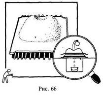 Можно изобрести и более простой тканевый фильтр. Например, выкопать в грунте ямку, поставить туда емкость, сверху из веток деревьев соорудить импровизированную решетку-настил, на которую уложить слой ткани. В центре ткань желательно продавить, чтобы образовалась направляющая воронка для стекания жидкости в емкость. После этого на ткань нагрести толстый слой песка, песок укрыть следующим куском ткани, сверху насыпать древесный уголь, снова укрыть тканью и снова уложить фильтрующее вещество. Таких слоев может быть несколько – чем больше, тем лучше. Для более надежного обеззараживания профильтрованную воду желательно пропустить через фильтр еще раз. Причем лучше не через уже использованный, а через сделанный вновь (рис. 66).