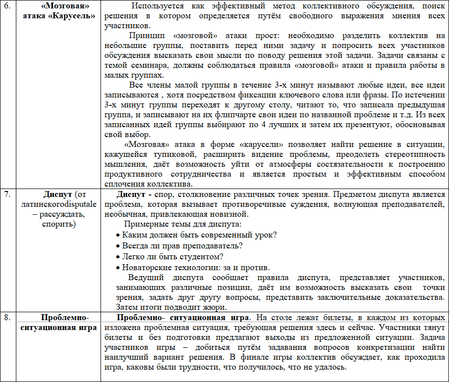 Опыт свидетельствует, что наиболее эффективными способами работы с педагогами в плане повышения их квалификации, как важнейший образовательный ресурс, позволяющий развить потенциал, углубить и расширить осваиваемое содержание, являются интерактивные методы.