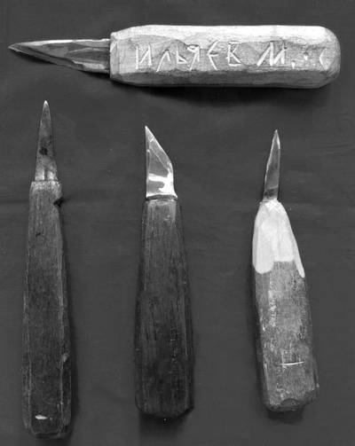 У резчика со временем накапливаются ножи различной формы и размеров: типа сапожного, а также с длинным и узким лезвием или с длинной, упирающейся в плечо ручкой – для разрезания фанеры и тонких дощечек. Все они пригодятся при определенных процессах обработки – каждый на своем месте иногда просто незаменим.