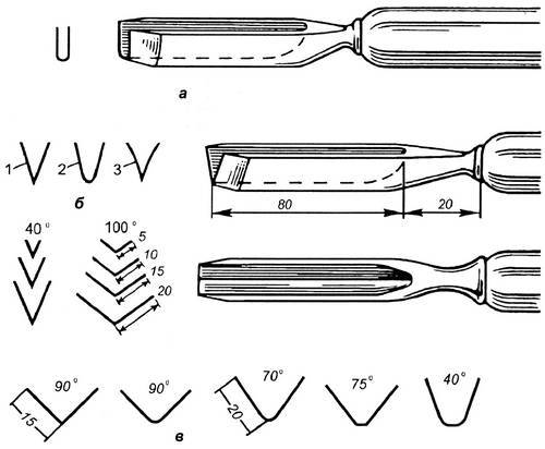 Требуется время и терпение, прежде чем резчик приобретет умение затачивать инструмент, разбираться в качестве стали, толщине полотна, форме и профилях режущего края. Основные принципы затачивания рассмотрим при описании инструмента.