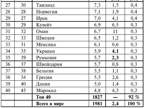 – Саудовская Аравия – 1652,2 $ (+0,1% с 2010 года);