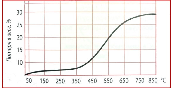 Рис 3. Потеря веса пробы угля при повышении температуры вследствие выхода из угля летучих газов по данным ДТА [21]