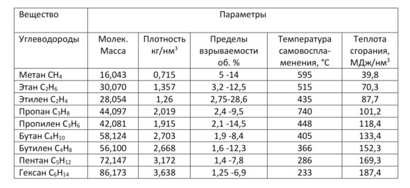 Таблица 2. Показывает, что нижний предел взрываемости углеводородов угля и температура самовоспламенения снижаются с увеличением молекулярной массы газа, а удельная теплота сгорания повышается. Эти параметры непосредственно определяют условия вспышки газовой оболочки вокруг частиц угля.