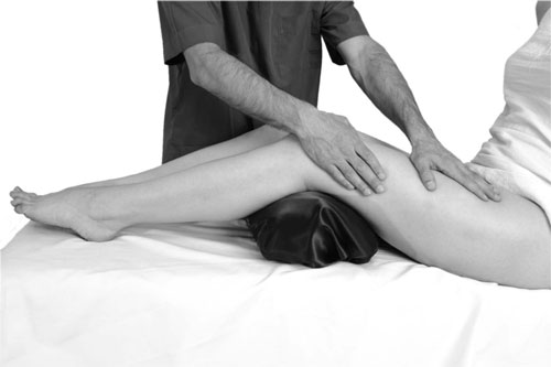 Обхватывающее поверхностное поглаживание. Чтобы выполнить этот прием, необходимо, чтобы ладонь плотно прилегала к обрабатываемому участку тела, повторяя ее мышечную форму, при этом кончики пальцев слегка проникают в межмышечные промежутки.