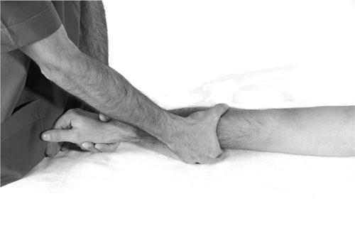 При выполнении массажа равномерно распределяйте нагрузку на обе руки. Для удобства можно поддерживать одной рукой конечность пациента. Следите, чтобы руки не были «деревянными», расслабьте их.