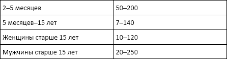 • дети 3–16 лет – 100–290 Ед/л;
