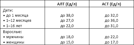 • повышение активности – патологическое – острый вирусный гепатит (АСТ до 150–1000 Ед/л, АЛТ до 300–1000 Ед/л), хронический гепатит, цирроз печени, опухоли печени и метастазы в печень, инфекционный мононуклеоз, инфаркт миокарда (при этом активность АСТ выше, чем активность АЛТ), легочная эмболия, опоясывающий лишай (Herpes zoster), полиомиелит, малярия, лептоспироз;
