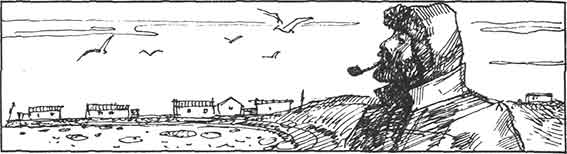 ... Раскопки шли своим чередом. Шустрые ребятишки из рыбачьего поселка неизменно сновали около нас. Славный народ! Таких воспитанных детей в городе редко увидишь. По воскресеньям нас навещали принарядившиеся жители ближайших поселков. Они дивились на странных чужеземцев, которые уже не первую неделю рылись в земле. Возвращаясь с охоты, заглядывал к нам сын Биг Чифа Ллойд: связка морской птицы за плечом, в руке старинное ружье, на груди пороховница. А мы все копали и копали.