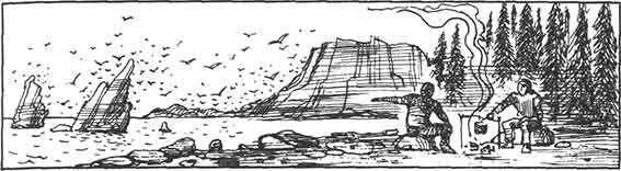 Некоторые исследователи считают, что наскапи сравнительно поздно достигли северной окраины Лабрадора, что их и родственных им монтэнье оттеснили на восток и на север враждебные ирокезы. Но это еще не доказано, и во всяком случае если не они, то другие индейцы охотились на оленей во внутренних областях Лабрадора. Наверно, огромные стада карибу уже в древности привлекали охотников. И о каком бы племени ни шла речь, весной люди должны были следовать за оленями в приморье. Этим я хочу сказать, что среди встреченных норманнами скрелингов вполне могли оказаться индейские охотники.