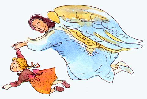 Хотя Ангел плавно набирал высоту и крепко держал Машу в руках, ей было как-то не по себе, и она зажмурила глазки.