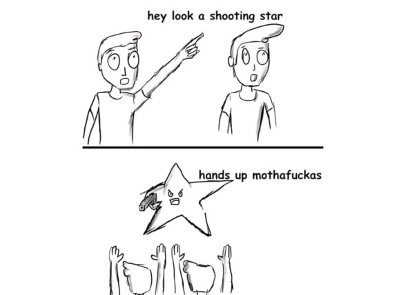 Предлагаю провести небольшой эксперимент. Вы знаете, как по-английски будет «падающая звезда»? Shooting star. Запомнить это словосочетание вам поможет следующая картинка: