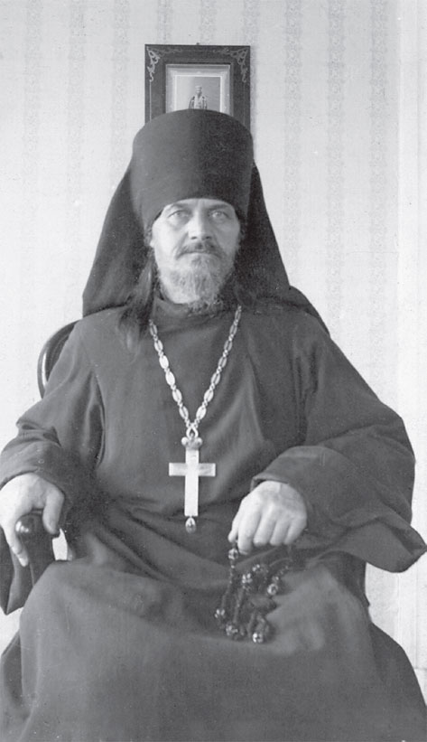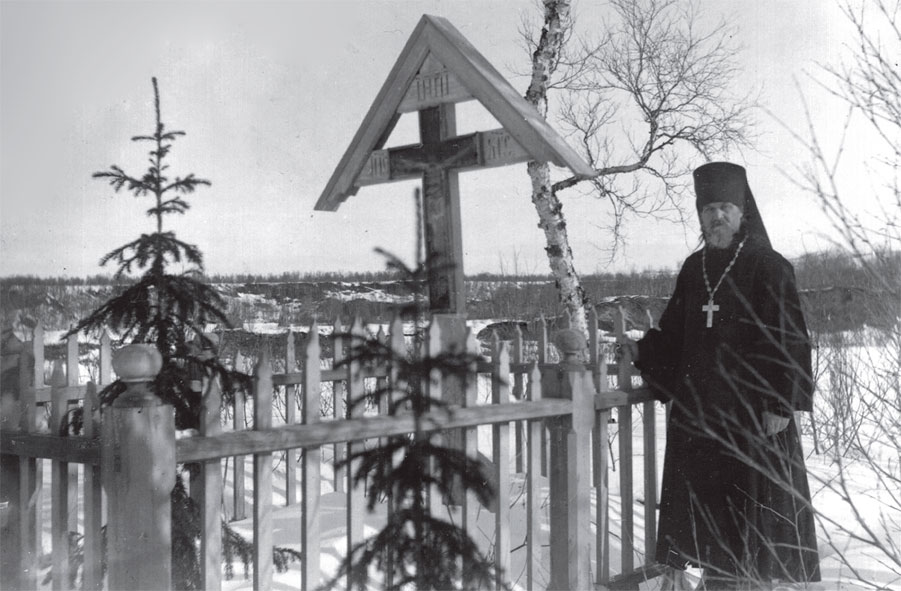 Игумен Иакинф у могильного креста архимандрита Ионафана (Баранова)