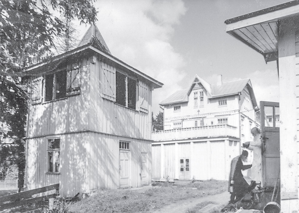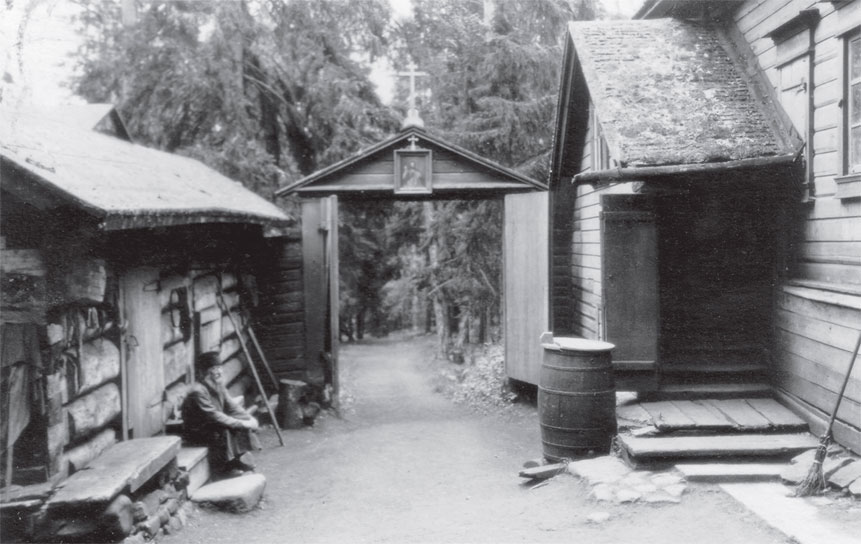Две вытянутые, похожие на казармы двухэтажные постройки, расположенные почти в ряд, стали братскими корпусами. Длинное бревенчатое здание в центре двора – молочный завод. Здесь изготовлялось масло. В этой же постройке поселились старушки, которые в свое время остались на Старом Валааме после закрытия границы, а теперь переехали сюда вместе со всеми. В том же здании находилась монастырская покойницкая, что, по-видимому, старушек вовсе не смущало.