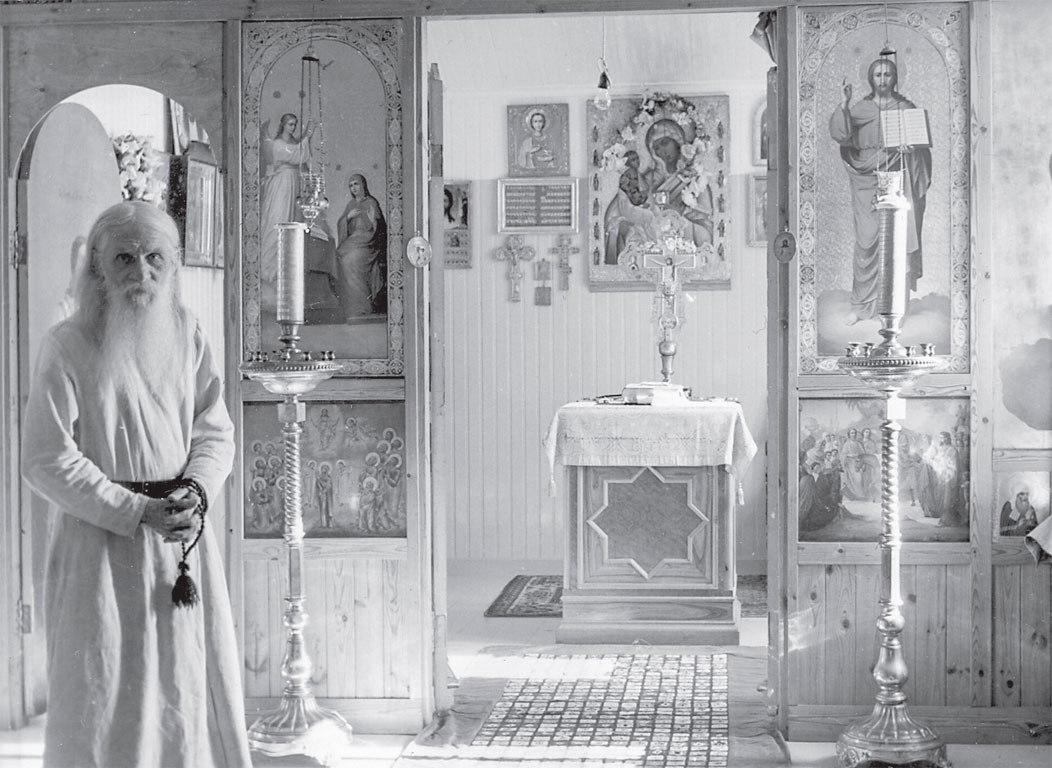 Иеромонах Памва у алтарной стены домовой церкви