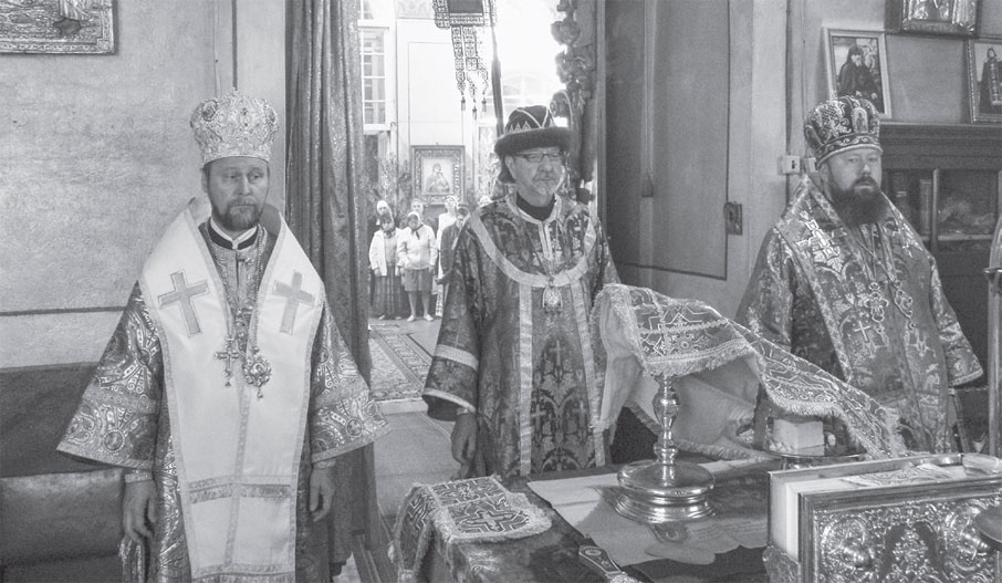 В Знаменской церкви с. Ильинского епископ Бежецкий и Весьегонский Филарет, митрополит Пантелеимон и епископ Йоэнсууский Арсений совершили Божественную литургию.