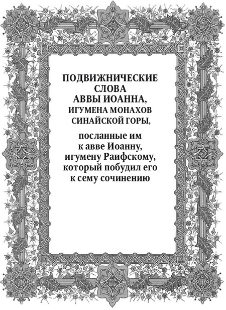 Подвижнические слова аввы иоанна, игумена монахов синайской горы, посланные им к авве иоанну, игумену раифскому, который побудил его к сему сочинению