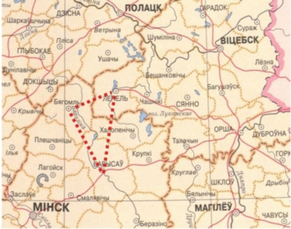 События, ставшие предметом нашего изучения, разворачивались с середины лета 1942 по май 1943 года в небольшом по площади уголке Беларуси на северо-востоке Минской области. Его границы приблизительно ограничиваются треугольником Борисов – Бегомль – Лепель. Западная сторона этого треугольника проходит по реке Березине (точнее, лежит чуть западнее реки), две другие ограничены дорогами: шоссе Бегомль – Лепель (северная сторона) и большаком Лепель – Борисов (восточная). 8