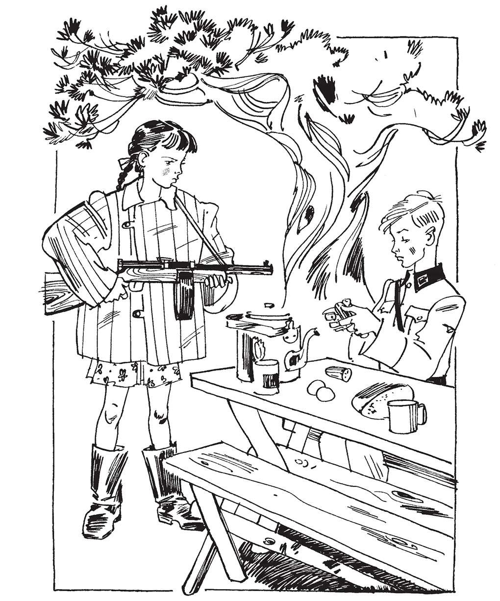 – Цыц! – закричал он и стал их растаскивать. – И не стыдно тебе с девочкой драться? – выговаривал он Курту. – А ты хороша, кто же так с пленным? – грозил он пальцем Сане.